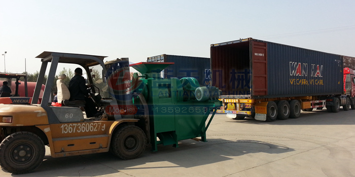 炭粉壓球機(jī)發(fā)往印度裝車現(xiàn)場(chǎng)