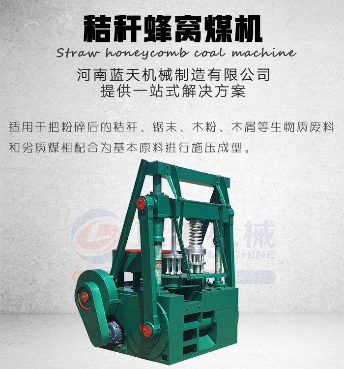河南藍(lán)天機(jī)械制造有限公司生產(chǎn)的秸稈蜂窩煤機(jī)可根據(jù)各個(gè)地區(qū)的煤質(zhì)和燃煤習(xí)慣不同,為用戶提供不同的孔徑、孔數(shù)、煤球外徑、動(dòng)力等技術(shù)參數(shù)設(shè)計(jì)特殊規(guī)格的成型模具。為準(zhǔn)用戶單獨(dú)規(guī)劃、設(shè)計(jì)、生產(chǎn)、安裝秸稈蜂窩煤機(jī)流水線,秸稈煤、易燃煤的配方與技術(shù),咨詢秸稈蜂窩煤機(jī)價(jià)格可撥打熱線: