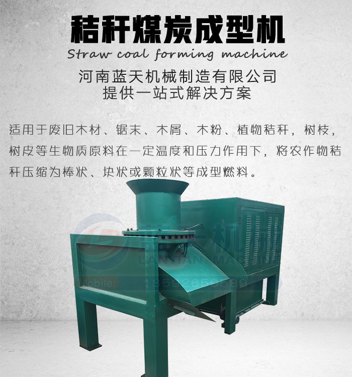 秸稈煤炭成型機(jī)是利用植物秸稈,樹枝,樹皮等生物質(zhì)原料在一定溫度和壓力作用下,將農(nóng)作物秸稈壓縮為棒狀、塊狀或顆粒狀等成型燃料,從而提高運(yùn)輸和貯存能力,改善秸稈燃燒性能,提高利用效率,擴(kuò)大應(yīng)用范圍。秸稈煤炭成型機(jī)主要用于把較松散的農(nóng)作物秸稈在壓力、溫度、粒度、含水率適宜的條件下成型為棒狀或塊狀,以提高燃料的燃燒性能。經(jīng)秸稈煤炭成型機(jī)生產(chǎn)出來的生物質(zhì)燃料塊是一種新型的可再生環(huán)保型燃料,具有清潔、高熱值、高燃燒效率等特點(diǎn),可做燃爐、鍋爐、發(fā)電爐的燃料,在部分領(lǐng)域完全可以做為煤的替代品,成型后的生物質(zhì)燃料塊也可以經(jīng)炭化后制成炭,以滿足生產(chǎn)和生活對(duì)高品位能源的需求。