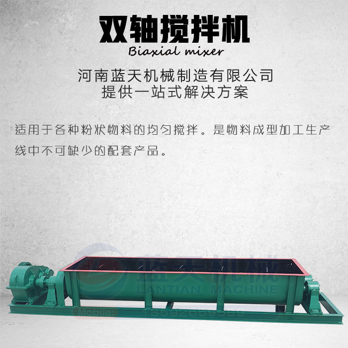 雙軸攪拌機(jī)是藍(lán)天機(jī)械利用兩根呈對(duì)稱狀的螺旋軸的同步旋轉(zhuǎn),在輸送干灰等粉狀物料的同時(shí)加水?dāng)嚢瑁鶆蚣訚窀苫曳蹱钗锪,達(dá)到使加濕物料環(huán)保無塵、不會(huì)滲出水滴的目的,從而便于粉狀物料裝車運(yùn)輸或轉(zhuǎn)入其它成型設(shè)備。