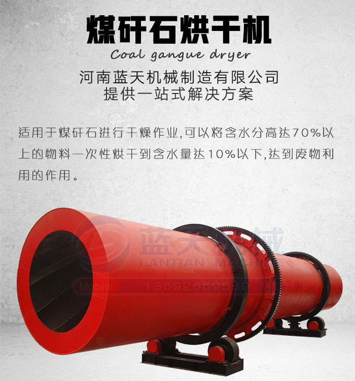 煤矸石是采煤過(guò)程和洗煤過(guò)程中排放的固體廢物,作為礦業(yè)固體廢物的一種,煤矸石棄置不用,占用大片土地,而煤矸石烘干機(jī)的出現(xiàn)可將其“變廢為寶”,使其產(chǎn)生巨大的利用價(jià)值。河南藍(lán)天機(jī)械制造有限公司生產(chǎn)的煤矸石烘干機(jī)對(duì)煤矸石烘干有很好的效果,以其熱效率高、生產(chǎn)能力大、使用壽命長(zhǎng)等優(yōu)勢(shì)被國(guó)內(nèi)外用戶所喜愛(ài)。煤矸石是采煤過(guò)程和洗煤過(guò)程中排放的固體廢物,作為礦業(yè)固體廢物的一種,煤矸石棄置不用,占用大片土地,而煤矸石烘干機(jī)的出現(xiàn)可將其變廢為寶,使其產(chǎn)生巨大的利用價(jià)值。河南藍(lán)天機(jī)械制造有限公司生產(chǎn)的煤矸石烘干機(jī)對(duì)煤矸石烘干有很好的效果,以其熱效率高、生產(chǎn)能力大、使用壽命長(zhǎng)等優(yōu)勢(shì)被廣大用戶所喜愛(ài),是建材設(shè)備中收益回收快的設(shè)備,設(shè)備型號(hào)齊全、工作能力強(qiáng),值得投資。