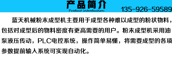 粉末成型機用途廣泛,可壓制如炭粉、礦粉、干粉、石墨粉、陶瓷、炭黑、焦末、水泥灰、煤粉、粉煤灰、冶煉渣、廢礦渣、廢陶粒渣等粉末狀或難以成型的散裝物料。主要用于煤炭、建材、化工、食品、電子、粉末冶金等行業(yè)。粉末成型機是河南藍(lán)天機械制造有限公司應(yīng)廣大新老用戶的需要,在原有成型機基礎(chǔ)上總結(jié)生產(chǎn)過程中的實踐經(jīng)驗,同時吸取了國外同類型機種的優(yōu)點,新研制生產(chǎn)的全自動粉末成型機。“藍(lán)天”全自動粉末成型機擁有液壓傳動,PLC電控系統(tǒng),操作簡單易懂,壓力大,廣泛用于壓制難以成型的各種粉狀物料,如金屬粉,因此也被稱呼為金屬粉末成型機。粉末成型機整機結(jié)構(gòu)簡單方便維護(hù)與維修,同時投資成本相比同類生產(chǎn)線要低的多,在市場上產(chǎn)生了強大的競爭力。